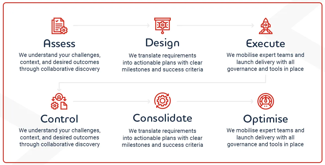 We take full ownership of delivery risk, compliance risk, and outcome achievement. Fixed-price models provide cost certainty and budget predictability. We commit to achieving agreed outcomes, not just supplying resources